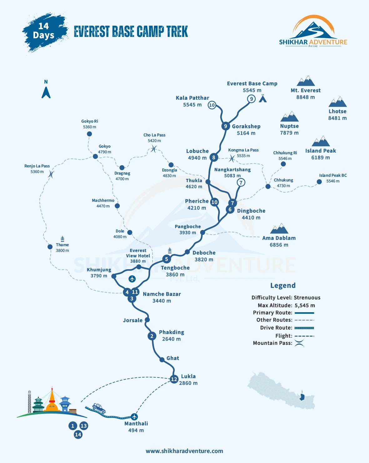 - Take a breathtaking flight to Lukla (2,840m), the entrance to Everest.
